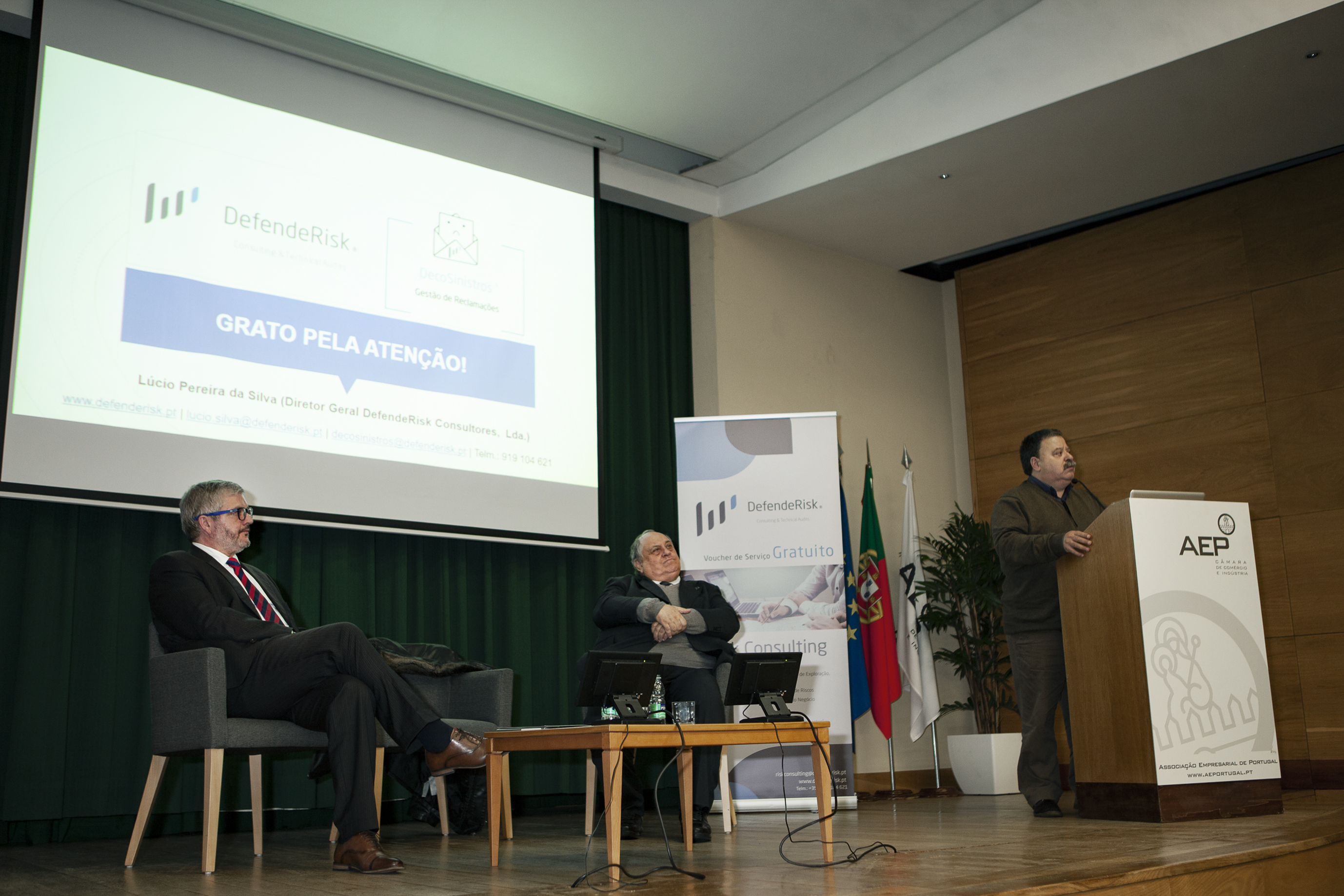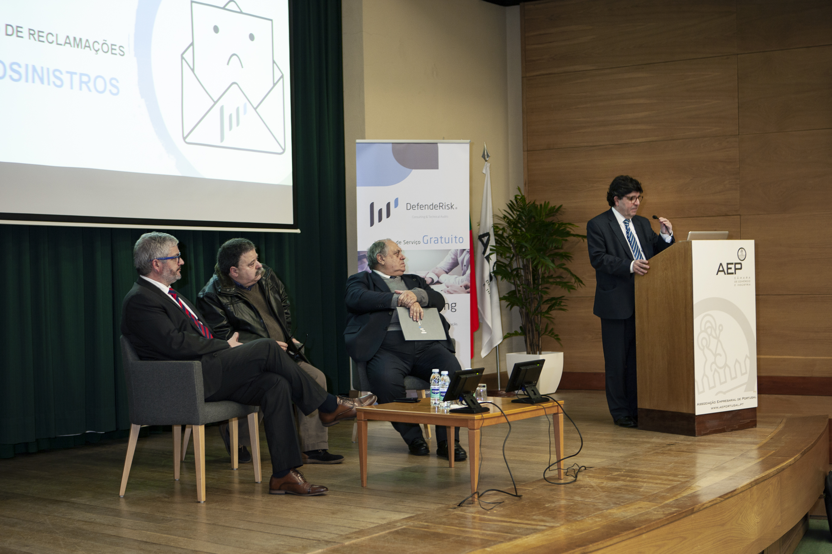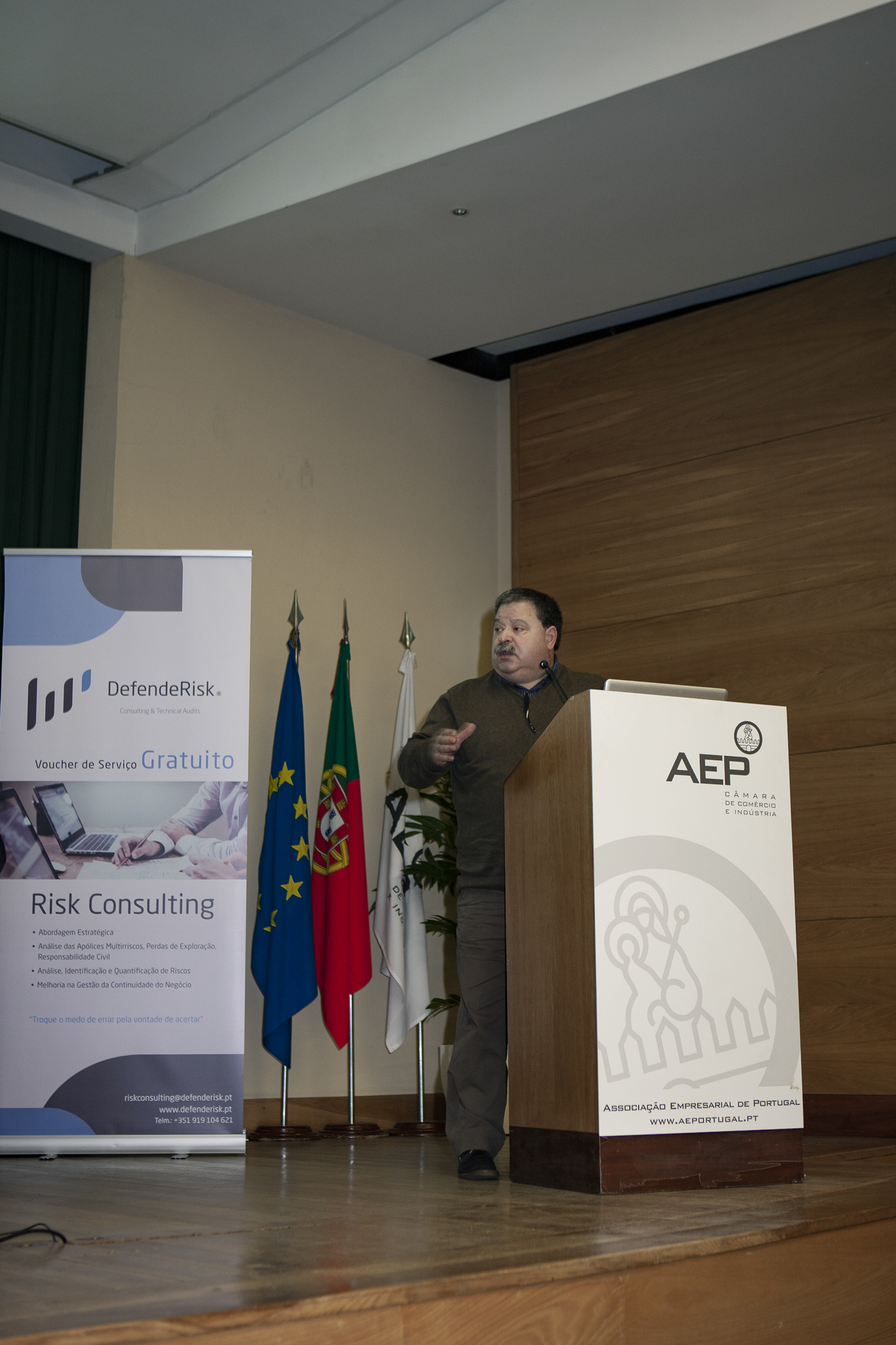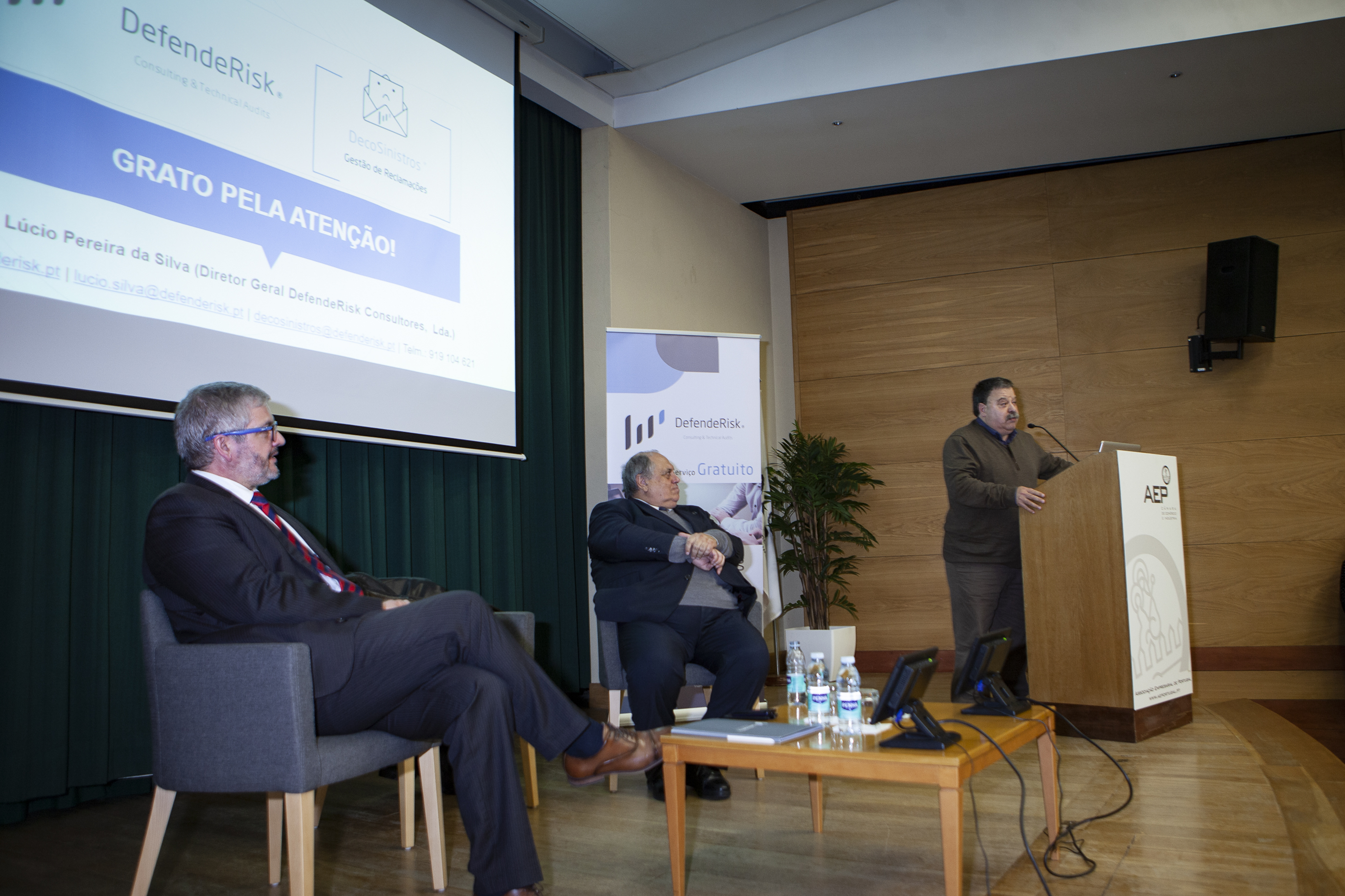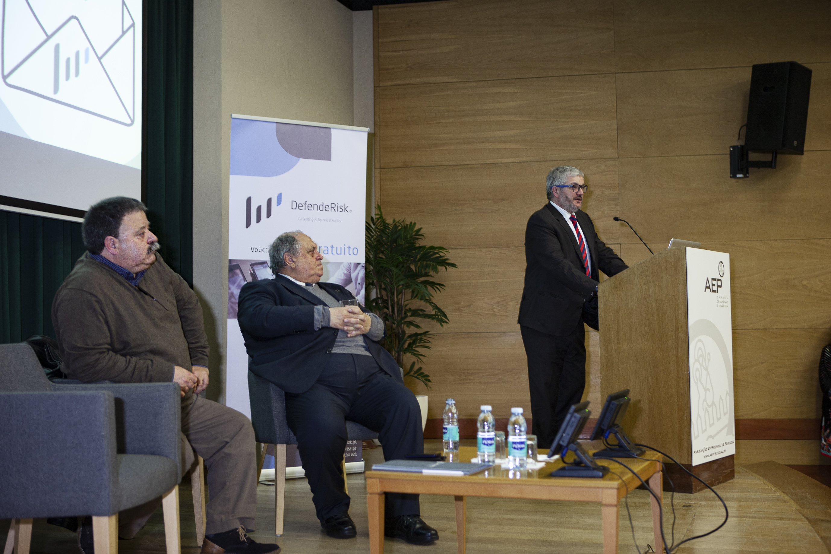 Na sessão, introduzida por António Pêgo, diretor da formação e apoio a serviços às empresas da AEP, foi divulgada a parceria entre a DefendeRisk e a instituição acolhedora do evento, no que diz respeito a formações nas áreas temáticas de Peritagem, Gestão do Risco e Gestão de Conflitos. A primeira formação arranca já no próximo mês de março.