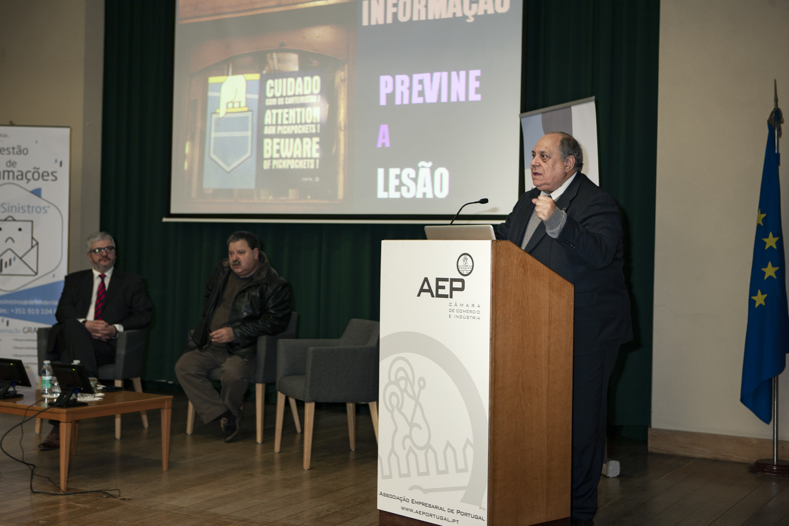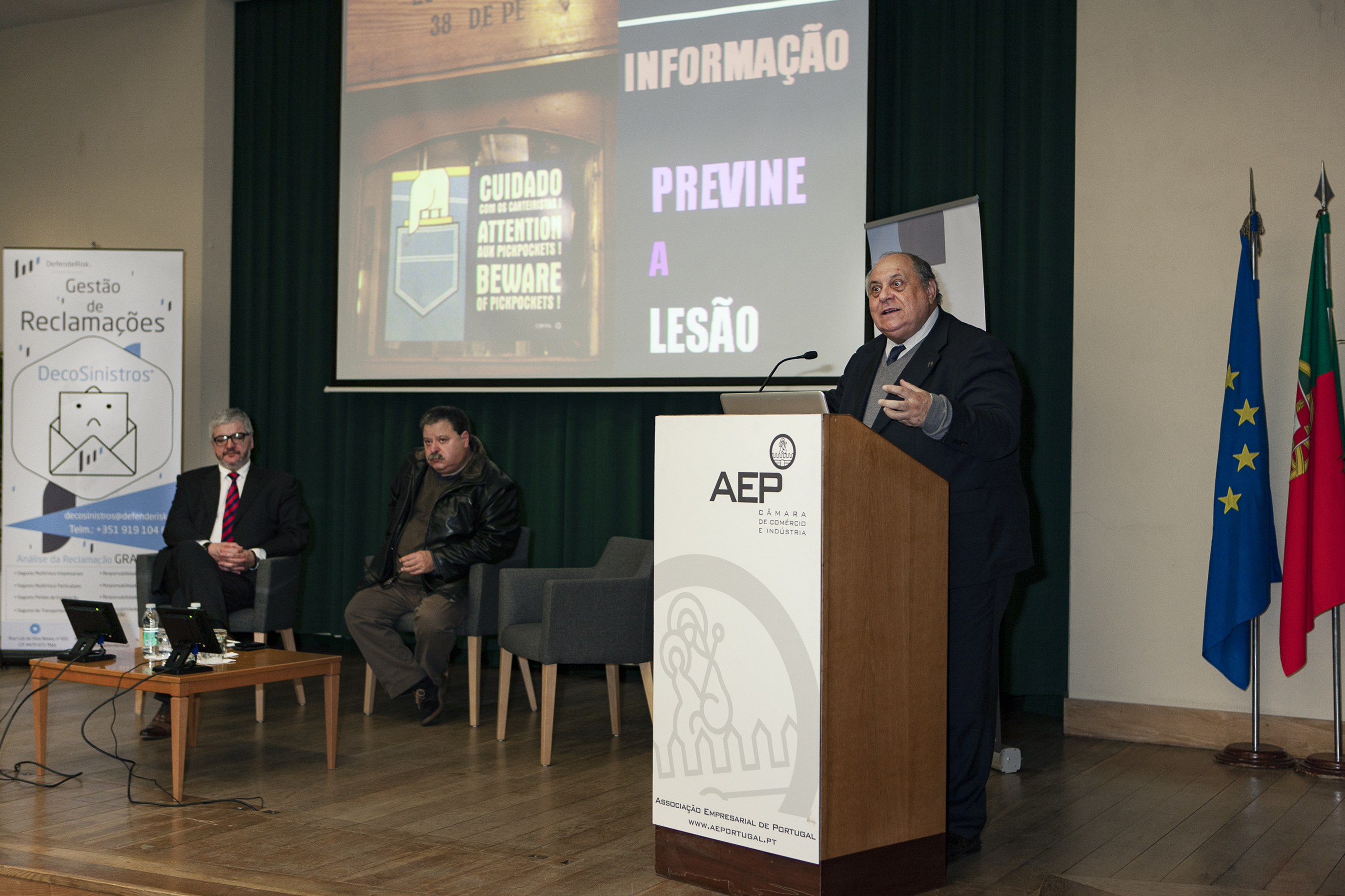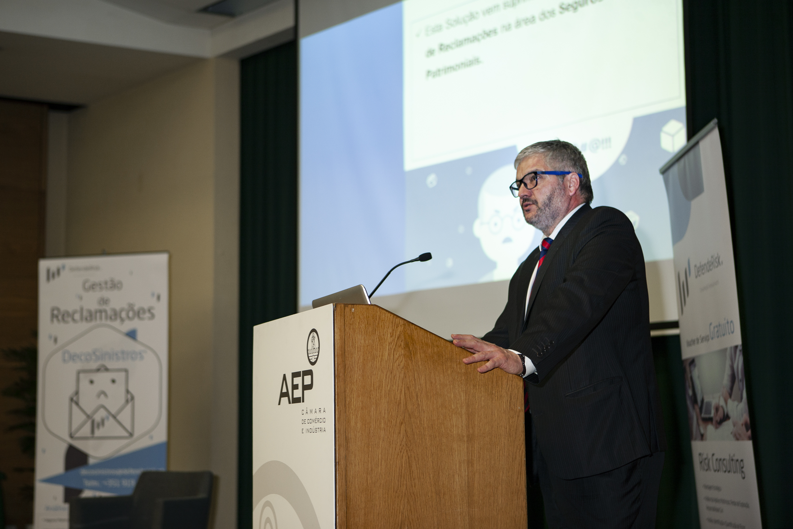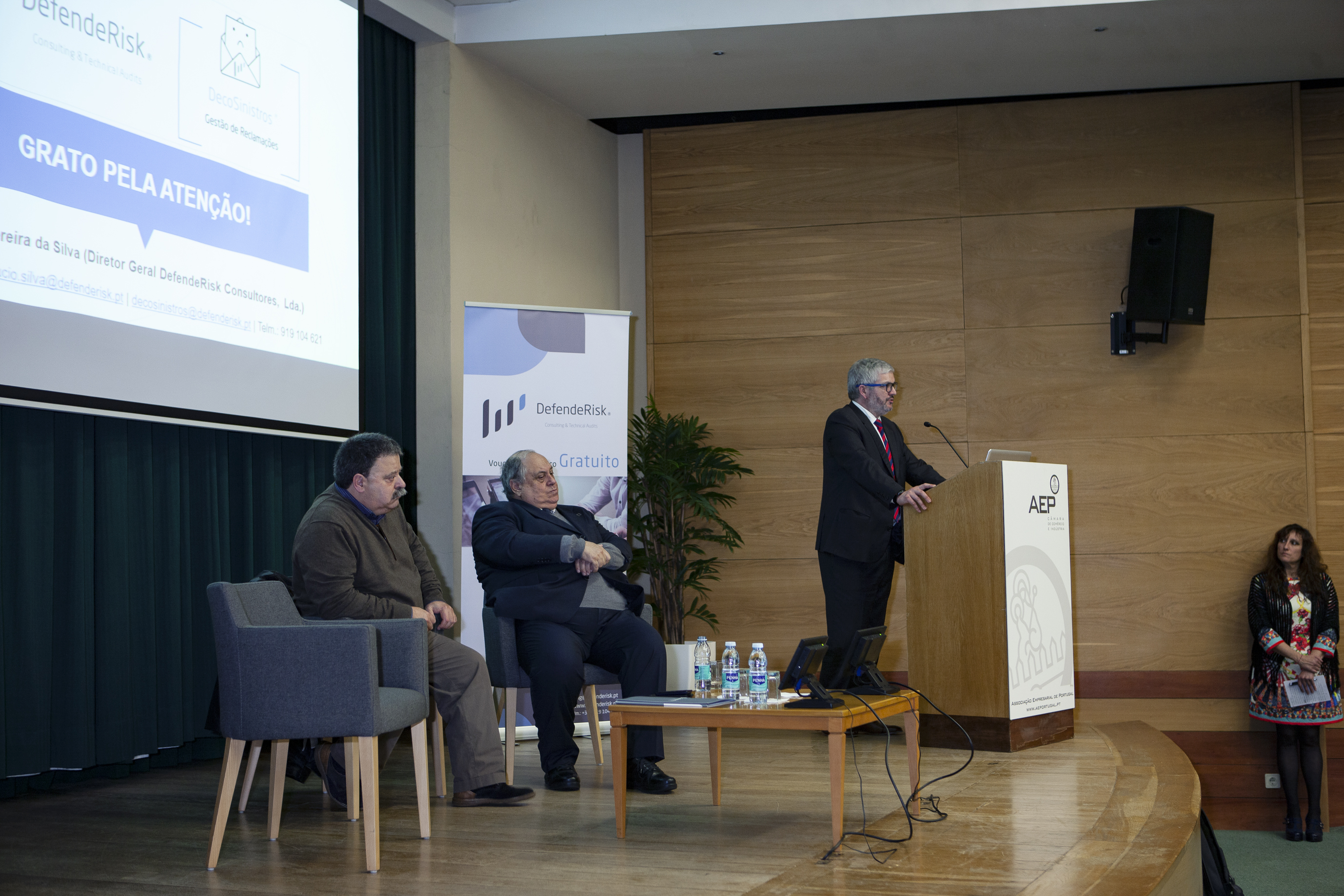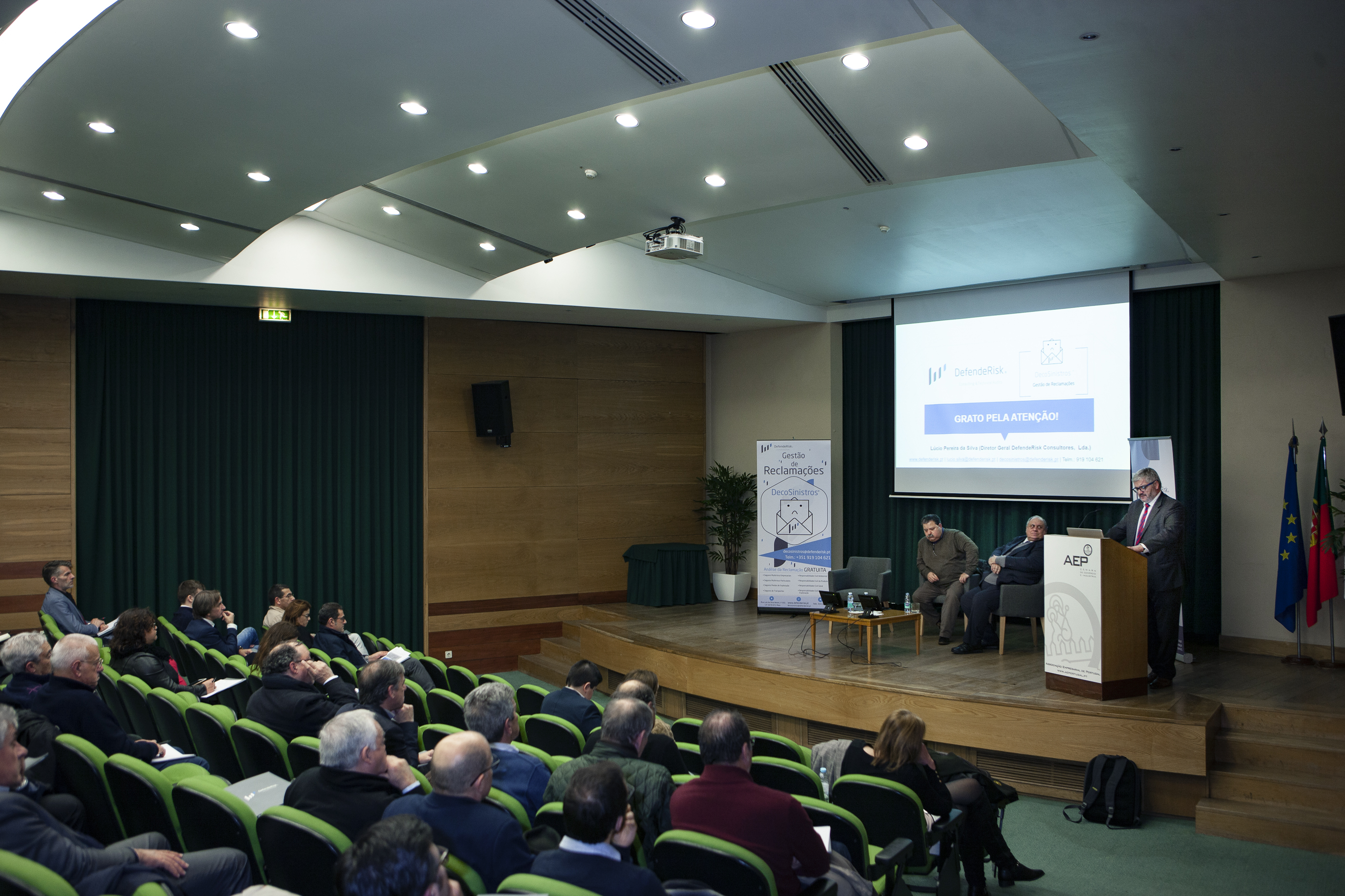 Na sessão, introduzida por António Pêgo, diretor da formação e apoio a serviços às empresas da AEP, foi divulgada a parceria entre a DefendeRisk e a instituição acolhedora do evento, no que diz respeito a formações nas áreas temáticas de Peritagem, Gestão do Risco e Gestão de Conflitos. A primeira formação arranca já no próximo mês de março.