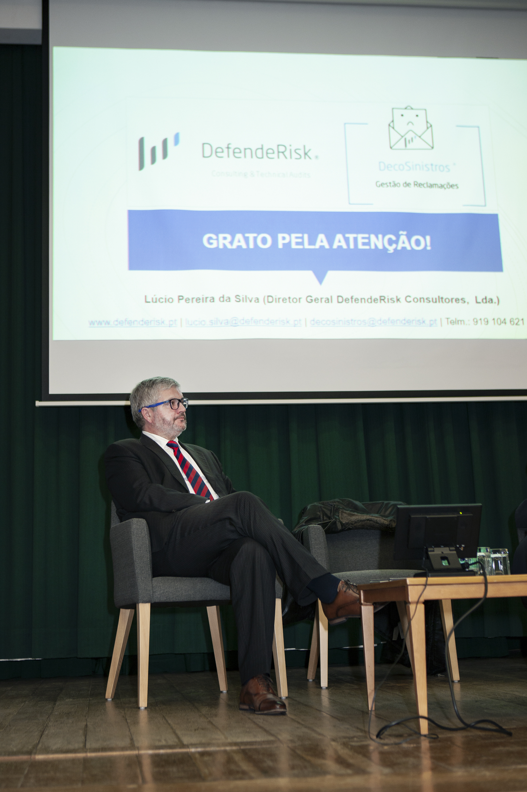 Lúcio Pereira da Silva, na apresentação da DecoSinistros, referiu a importância deste novo serviço da DefendeRisk, que segue a filosofia da empresa de “ser a única que defende exclusivamente os segurados que não concordem com a regularização do seu processo de sinistro na área de seguros patrimoniais”. O diretor geral da Defenderisk, deu ainda ênfase às três formações acordadas em parceria com a AEP, nas quais será formador, e que se irão realizar entre março e maio, a saber: Gestão do Risco das Apólices na Continuidade do Negócio (21 de março), Gestão de Conflitos na Peritagem (10 de abril) e Planeamento, Gestão e Organização da Peritagem Patrimonial (17 | 18 | 24 e 25 de maio).